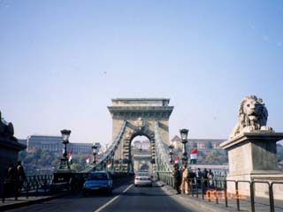 トカイの民家のワインセラーを訪ね、テイスティングをして樽やまさに来週から仕込む貴腐葡萄などを見せてもらいました。車なのでちょっと多めにワインを買い込み、ブダプストに向け出発しました。ほんとうにハンガリーの道は果てしなくまっすぐです。一般道路なのに140K位出ちゃいます。高速に至っては180K!!(もちろん制限速度違反です)車の少なさとあいまって、ドイツより飛ばせたりします。(^_^;)そしていよいよブダペストです。ここは唯一ハネムーンらしくインターコンチに予約をしてあったので多少道に迷ったものの、くさり橋を渡ってホテルに着きました。そのロケーションは超1等地!!